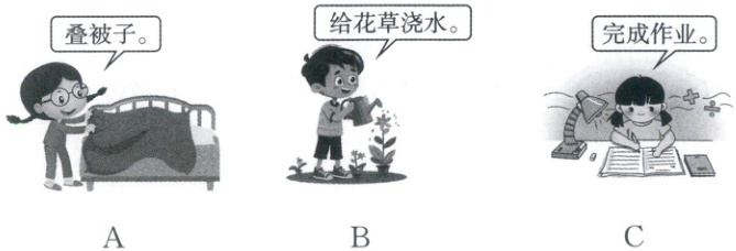 课堂上,老师分享了几张小朋友做家务的图片,大家一起讨论一下吧!据此完成 2~3 题。