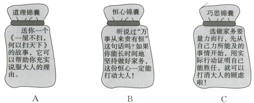 5. 你从哪个锦囊里懂得了“一个人应该从身边的小事做起,逐步积累,将来才能成就大事”的道理?(