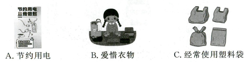 1.出门乘坐公交车 2.随手关灯 3.少买衣服 4.减少一次性餐具的使用