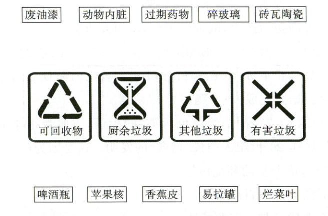 四、请将下列垃圾放进正确的垃圾桶。(10 分)