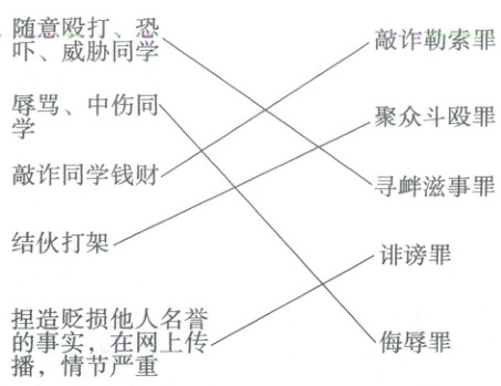 请用连线的方式把校园严重欺凌行为与对应的刑法罪名连起来。