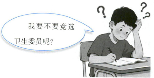 新学期到了,五(1)班要民主选举本学期的班委会。团结同学、劳动积极的张恒想竞选卫生委员,可是他想到自己学习成绩一般,没有什么特长,担心同学们不会选他。你想对张恒说些什么呢?