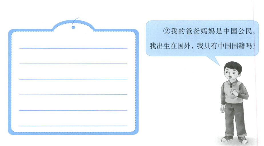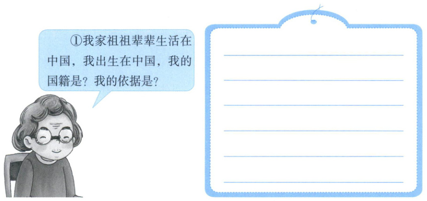 ① 中国国籍 《中华人民共和国国籍法》:父母双方或一方为中国公民,本人出生在中国,具有中国国籍。