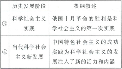 例5 (2024·湘豫名校期中)某班学生在暑假期间开展“科学社会主义历史演变”的专题研究活动。下面是部分研究提纲。
