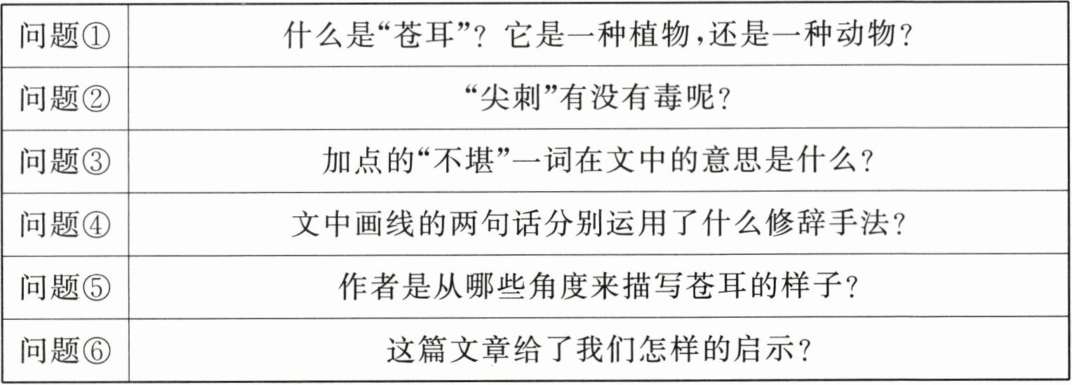 。(2分)(2)作者是从哪些角度来描写苍耳的样子?结合句子内容选一选。(可多选)(3分)