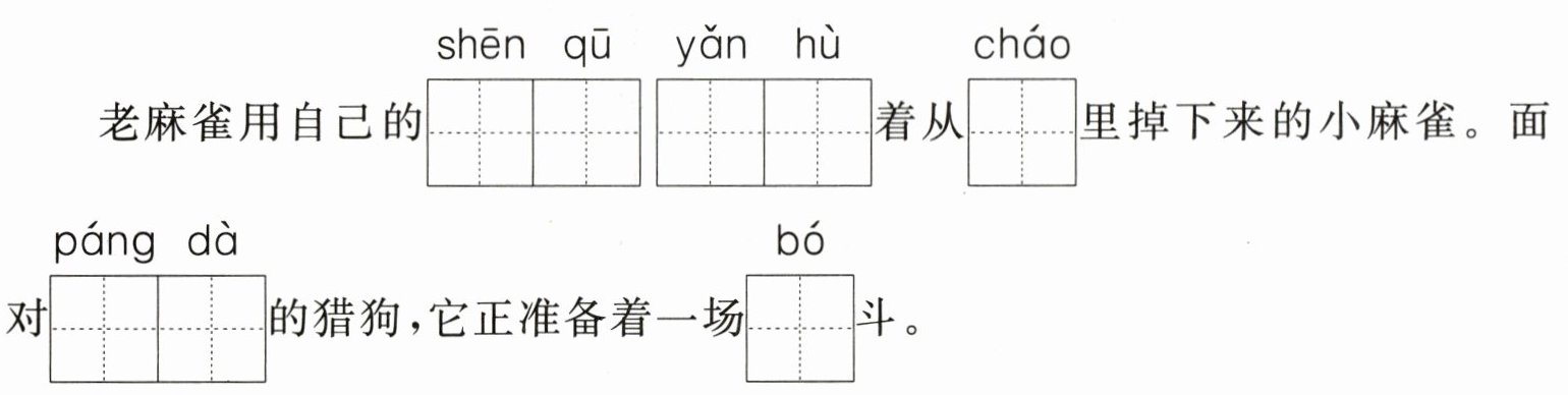 1. 根据语境,看拼音写字词。(5分)