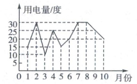 9. 小亮家 1 月至 10 月的用电量统计如图所示,这组数据的众数和中位数分别是(