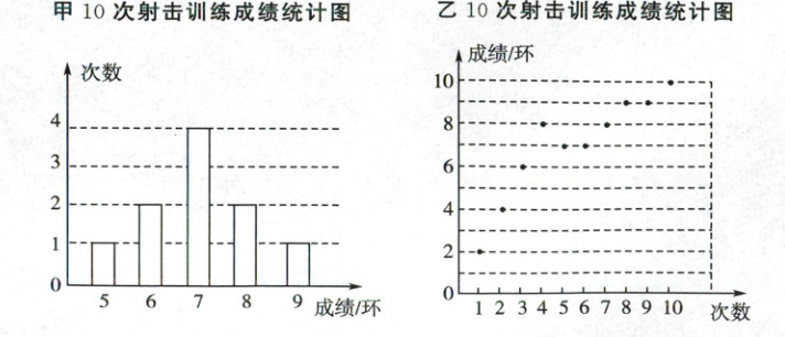 甲、乙两人在相同的条件下完成了 10 次射击训练,两人的成绩(单位:环)如图所示.