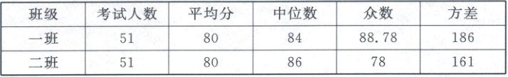 10. 八年级一班、二班学生的数学期中成绩(满分:100 分)统计如下: