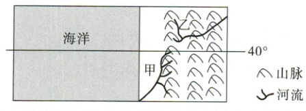 下图中甲、乙两河流位于大陆西岸,山脉自东向西逐渐升高,高差约为4000m。乙河流受矿产开采的影响,流域植被破坏较严重。甲、乙两河流在水文环境上存在着很大差异,11月—次年1月为甲河流汛期,河流径流量较大,6—9月为甲河流枯水期。