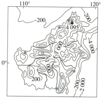 材料二 下图为加里曼丹岛地形示意图。