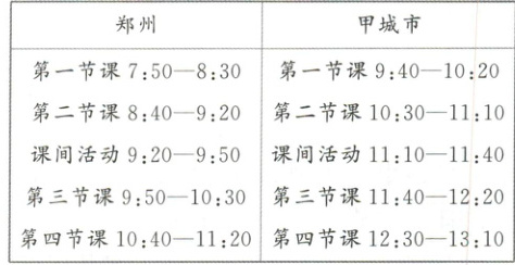 (2025·广东中山高二月考)下表为我国两座城市的中学上午作息时间表。据此完成第3题。