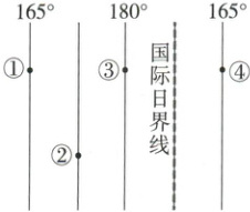 2. 若某时刻①地地方时为2月5日23时,则2小时后(