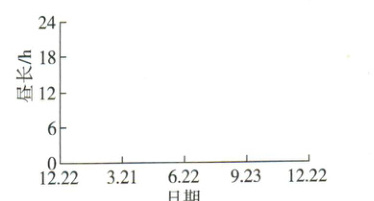 (3)绘制赤道、北极圈和北极点的昼长变化规律。