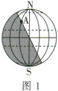 (1)利用昼(夜)弧所跨的经度数来计算图1中A点的昼长和夜长。