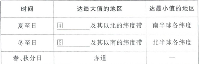 向南北两方降低。(2) 夏至日:由②