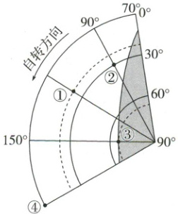4. ①②③④四点该日正午太阳高度由大到小排列为 (