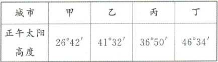 (2025·江西南昌高二期中) 下表为冬至日时我国四个城市的正午太阳高度统计表。据此完成 1~2 题。