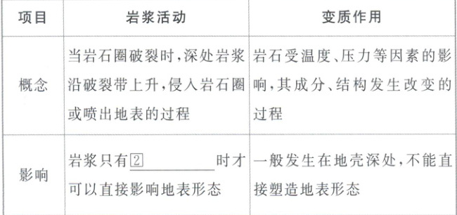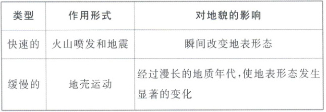 ①热能 ②喷出地表 ③变位 ④抬升和沉降 ⑤高低不平