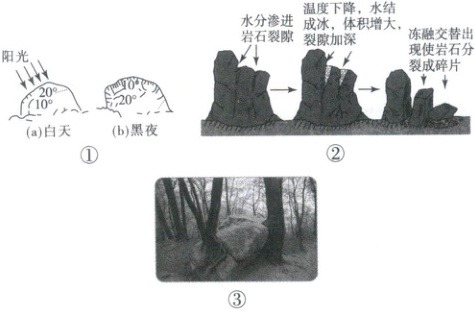 1. ①②③的风化作用类型依次为(