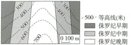 (2025·广东茂名高二期中) 下图为某地地层及等高线分布图。读图,完成3∼4题。