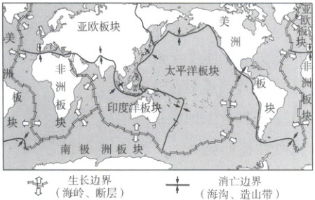 (3) 从板块运动角度分析大西洋、地中海面积的未来变化趋势,并说明原因。 [地理实践力]