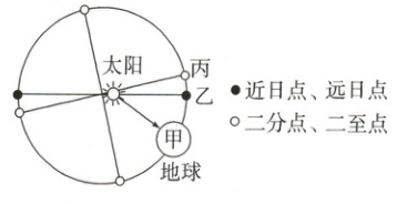 解析:第3题,读图可知,乙点距离太阳较近,为近日点,A错误;二分二至日中,冬至日靠近近日点,因此丙点为冬至点,B错误;丙点为冬至点,时间为12月22日前后,乙点为近日点,时间为1月初,可知图示地球顺时针方向公转,C正确,D错误。第4题,结合所学知识可知,地球在近日点处公转速度较快,在远日点处公转速度较慢。近日点的时间为1月初,春分点为3月21日前后,秋分点为9月23日前后,春分点较秋分点距离近日点更近,因此春分点地球公转速度快于秋分点。春分点地球正在朝远离近日点方向运动,因此公转速度逐渐减慢,C正确。