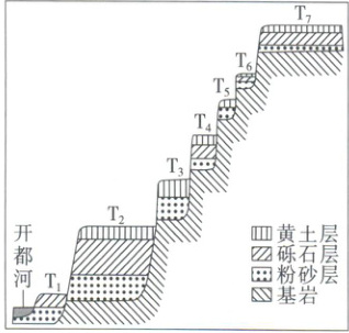 (2)简述该河谷两岸多级河流阶地的形成过程。(6分)
