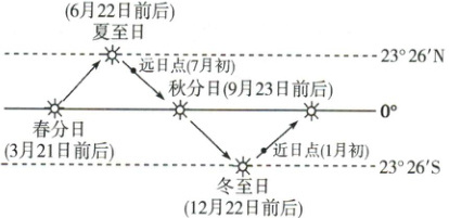 时间:近、远日点分别是1月初和7月初;冬、夏至日分别是12月22日前后和6月22日前后。