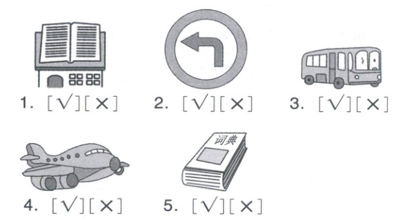 一、听录音,判断下列图片与所听内容是否相符,相符的选[√],不相符的选[×]。每题听两遍。(10分)