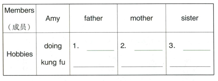 My name is Amy. I'm from the USA. I live in China with my dad,my mum and my sister now. My hobby is doing kung fu,because it's fun. I often do Chinese kung fu after school. My sister Cathy is eight years old. She likes playing the piano. My father is a PE teacher in my school. He likes playing football. He is good at it. My mother is an English teacher in a university. She likes reading comic books. I have a happy family.
