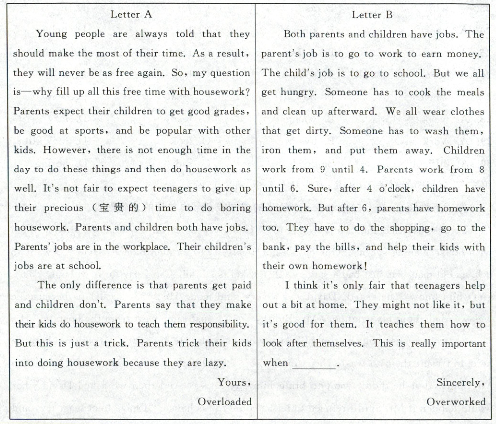 43.Why does Letter B say it's good for teenagers to help out a bit at home?