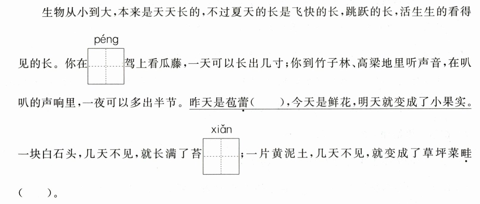 (2)生物从小到大,本来是天天长的,不过夏天的长是飞快的长,跳跃的长,活生生的看得见的长。