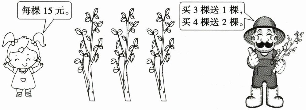 5. 195元最多能买多少棵下面这样的树苗?(5分)