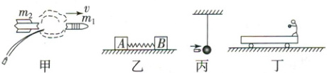 C.图丙中子弹击穿木球的过程中,子弹和木球组成的系统水平方向动量不守恒