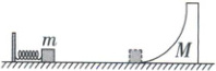 例 6 如图所示,质量 $ M = 4 $ kg 的四分之一光滑圆弧槽静置在光滑水平面上,圆弧底端和水平面相切。一质量 $ m = 1 $ kg 的小物块,被压缩弹簧弹出后,冲上圆弧槽,并从顶端滑出,滑出时圆弧槽的速度为 $ 1 $ m/s,g 取 $ 10 $ m/s^2。求: