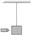 例 2 (2025·浙江杭州市期中) 如图所示,将一个质量 $M = 1.99\ kg$ 的砂箱,用长 $L = 1.00\ m$ 的轻绳悬挂在天花板上,一颗质量 $m = 10\ g$ 的子弹水平射人砂箱,砂箱发生摆动,若子弹射击砂箱时的速度 $v = 600\ m/s$,求:
