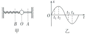 例5如图甲所示,一弹簧振子在$A$、$B$间振动,取向右为正方向,振子经过$O$点时为计时起点,其振动的$x-t$图像如图乙所示,则下列说法正确的是(