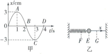 (1) 如图乙所示,振子在图中“$F$、$G$”区间内运动,振子振动的起始位置是$\underline{