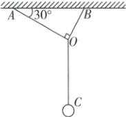 如图所示,三根细线在O点处打结,A、B端固定在同一水平面上相距为l的两点上,使AOB成直角三角形,∠BAO = 30°,已知OC线长是l,下端C点系着一个小球,下列说法正确的是(以下皆指小角度摆动) (
