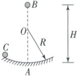 (多选)(2025·安徽合肥市期中)如图所示,光滑圆弧槽半径为R(未知),A为最低点,C到A的距离远远小于R,小球B位于A点的正上方,且到A点的距离为H。若同时释放小球B、C,则要使两小球B和C在A点相遇(小球B和C可视为质点),R的可能值为 (