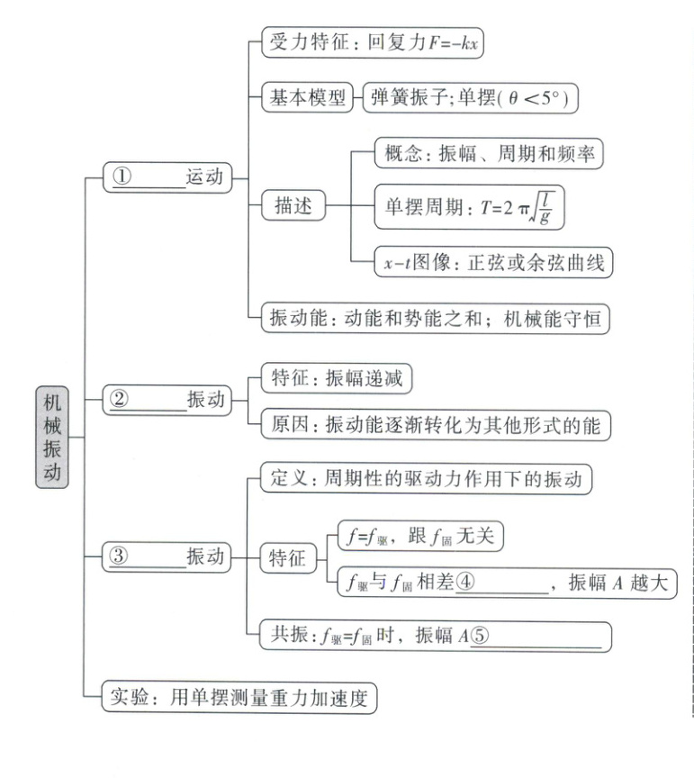 ①简谐 ②阻尼 ③受迫 ④越小 ⑤最大