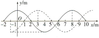 (2025·山东泰安市期中) 如图所示,实线是一列简谐横波在 $ t_1 = 0 $ 时刻的波形图,虚线是在 $ t_2 = 0.5s $ 时刻的波形图。波的周期为 $ T $,若 $ 2T < t_2 - t_1 < 3T $,则波速可能正确的是 (