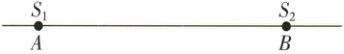 【教材经典P78第4题】波源$S_1$和$S_2$振动方向相同,频率均为4Hz,分别置于均匀介质中的A、B两点,AB = 1.2m,如图所示。两波源产生的简谐横波沿直线AB相向传播,波速为4m/s。已知两波源振动的初始相位相同,求A、B间合振动振幅最小的点的位置。