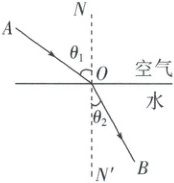 的正弦之比,叫作这种介质的绝对折射率,简称折射率,用符号$n$表示。真空的折射率为$1$,空气的折射率近似为$1$。2. 定义式:$n = \frac{\sin \theta _{1}}{\sin \theta _{2}}$。