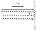 3. (应用动量定理处理“流体模型”问题)一束水流以 $ v = 5 \, m/s $ 水平射到竖直的墙上, 水流的横截面积 $ S = 4 \, cm^2 $, 则水流对墙壁的压力为(设水和墙壁碰撞后沿墙壁流下, 水的密度 $ \rho = 1 × 10^3 \, kg/m^3 $) (