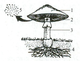 。[4]是蘑菇的地下部分,叫作营养菌丝,它的作用是分解腐烂的植物体而获得营养