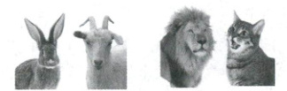 (1)爱因斯坦说过:“提出一个问题往往比解决一个问题更重要。”对比观察图中家兔、山羊与狮子、猫的双眼在头部的位置,请描述它们双眼在头部位置的特点: