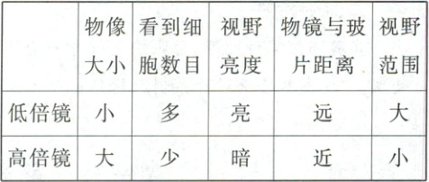 3. 低倍镜和高倍镜下显微镜视野的比较