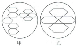 16. 下图是在显微镜下观察到的几何图形。要将图甲的几何图形换成图乙,载玻片移动的方向和视野内明暗变化是(